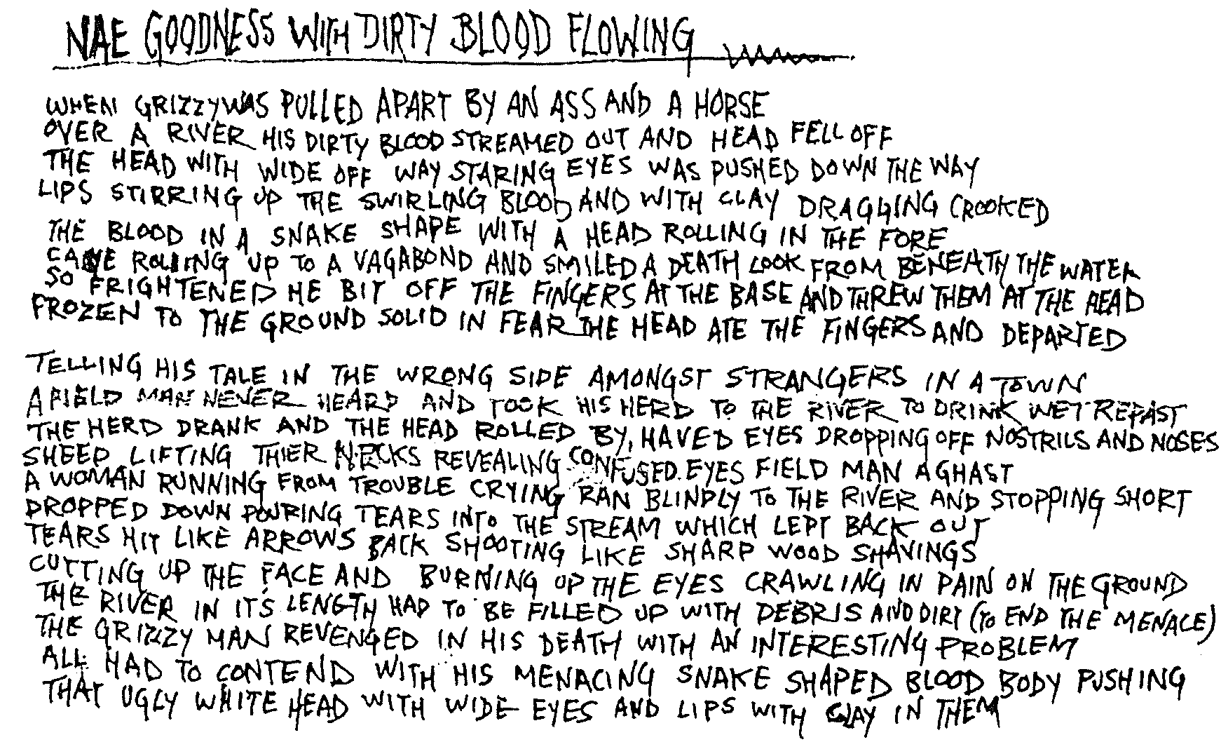 lips stirring up the swirling blood and with clay dragging crooked